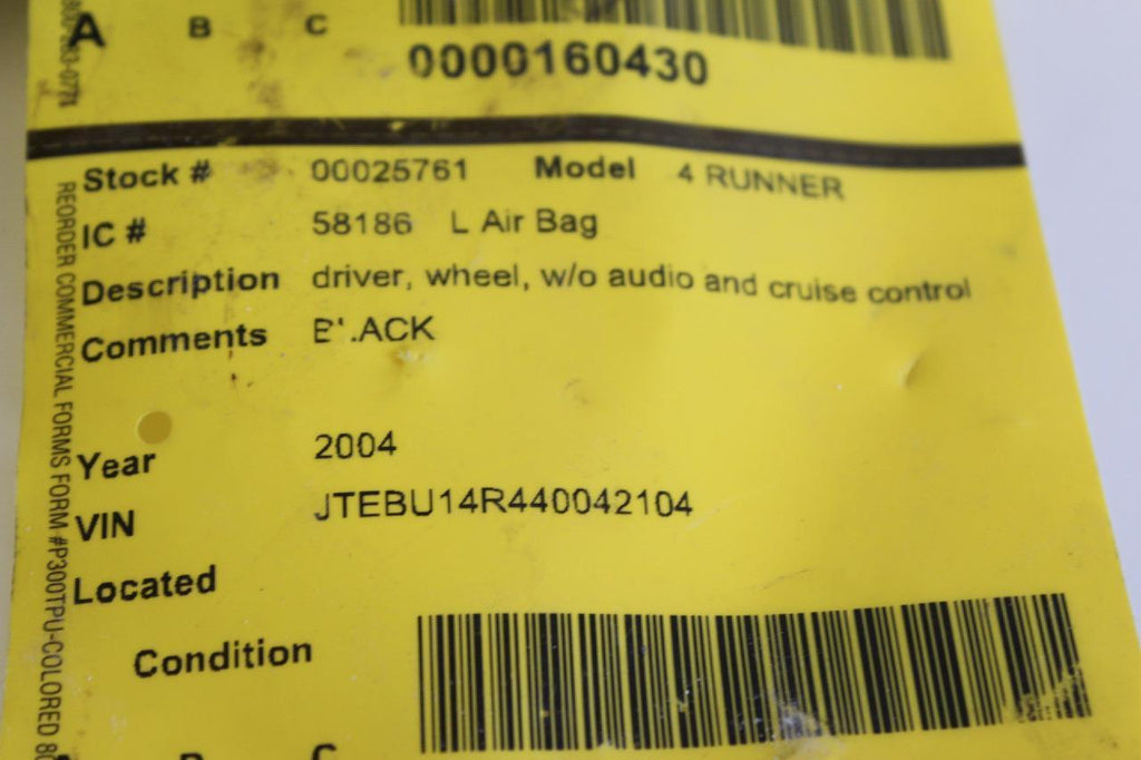 2003-2009 TOYOTA 4RUNNER DRIVER STEERING WHEEL AIR BAG BLACK