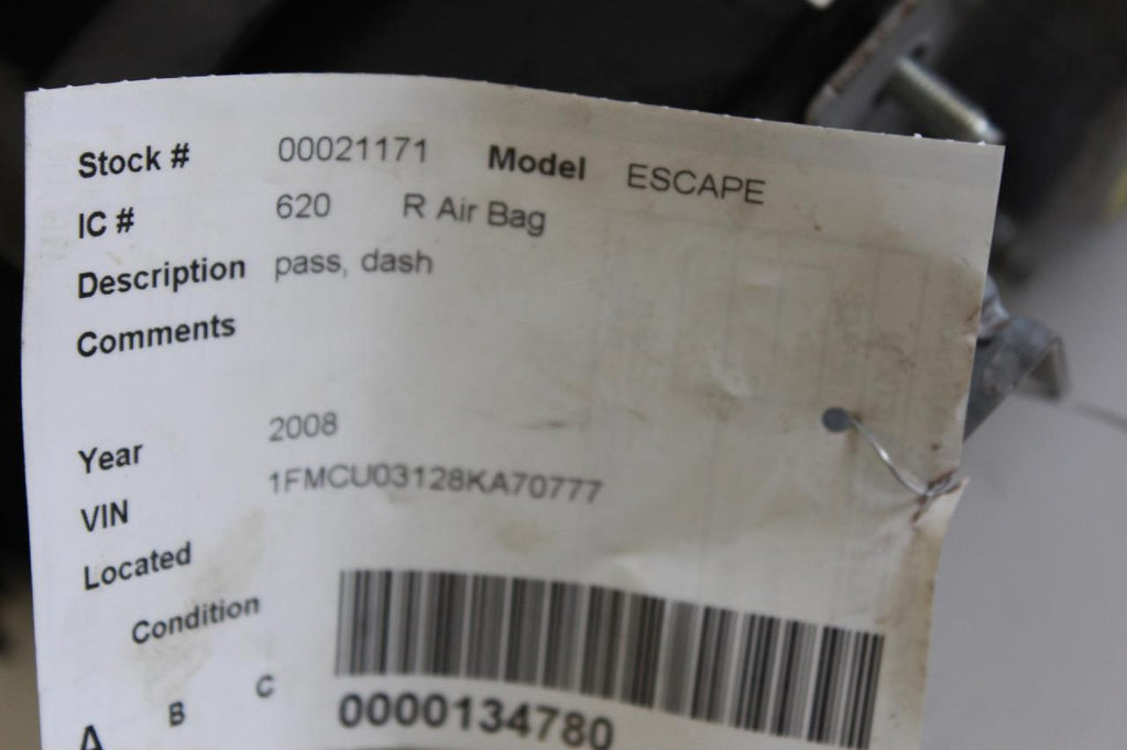 2008-2011 FORD ESCAPE PASSENGER RIGHT SIDE DASH AIR BAG GREY