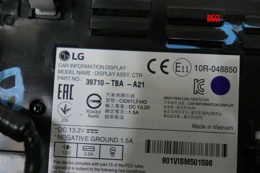 2016-2018 Honda Civic Radio Touch Screen Display ONL 39710-TBA-A21