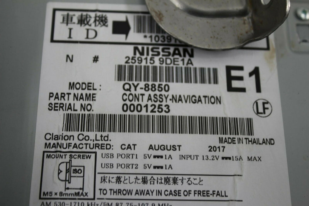 2016-2017 Nissan Maxima Navigation Radio Cd Player Display Screen W/ Camera