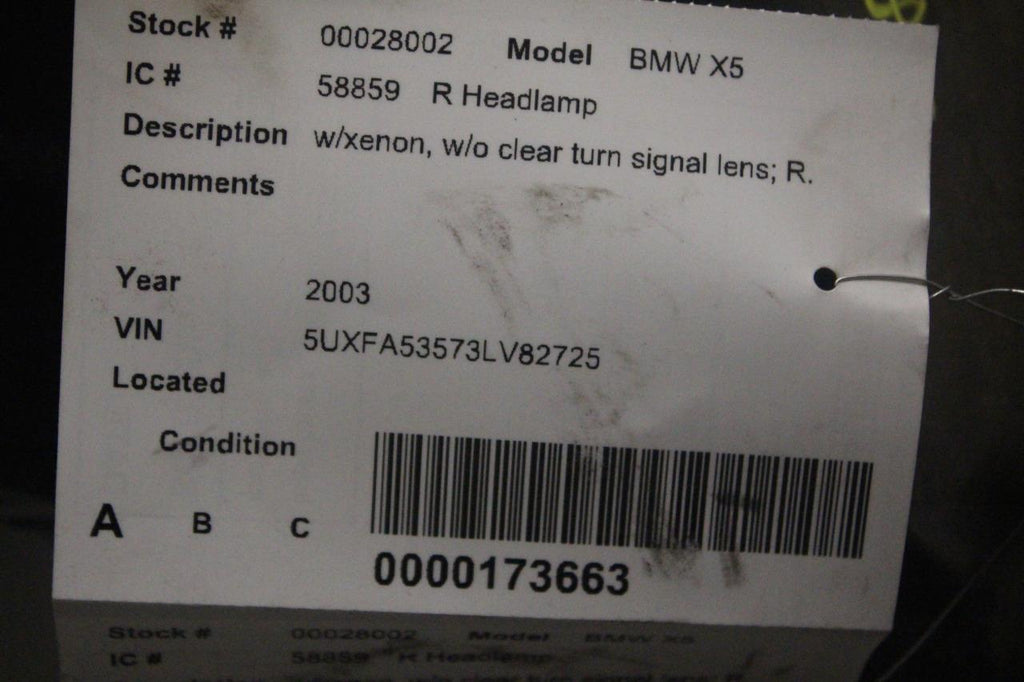 2000-2003 BMW X5 PASSENGER SIDE FRONT XENON HEADLIGHT