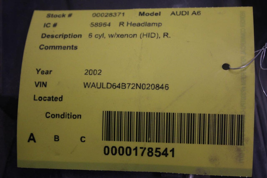 2002-2004 AUDI A6 FRONT PASSENGER RIGHT SIDE HEADLIGHT 28371