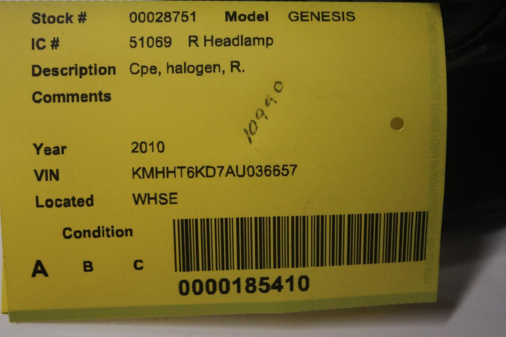 2010-2012 HYUNDAI GENESIS COUPE FRONT PASSENGER SIDE HEADLIGHT 92102-2M050