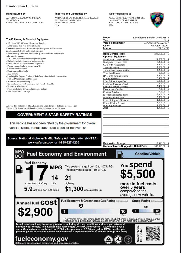 You are viewing an exceptionally clean and tastefully spec’d 2016 Lamborghini Huracán LP610-4 with under 20500k miles and an original MSRP of $305,595. This vehicle features over $63,000 in factory options and more than $42,000 in premium aftermarket enhancements, making it one of the best-equipped and best-looking Huracáns on the market.