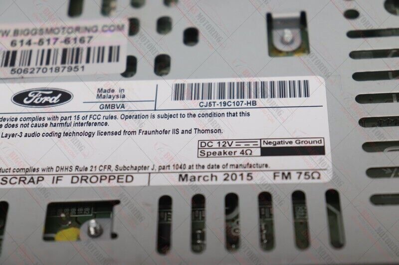 2015-2016 Ford Escape Radio Stereo Cd Mechanism Player CJ5T-19C107-HB