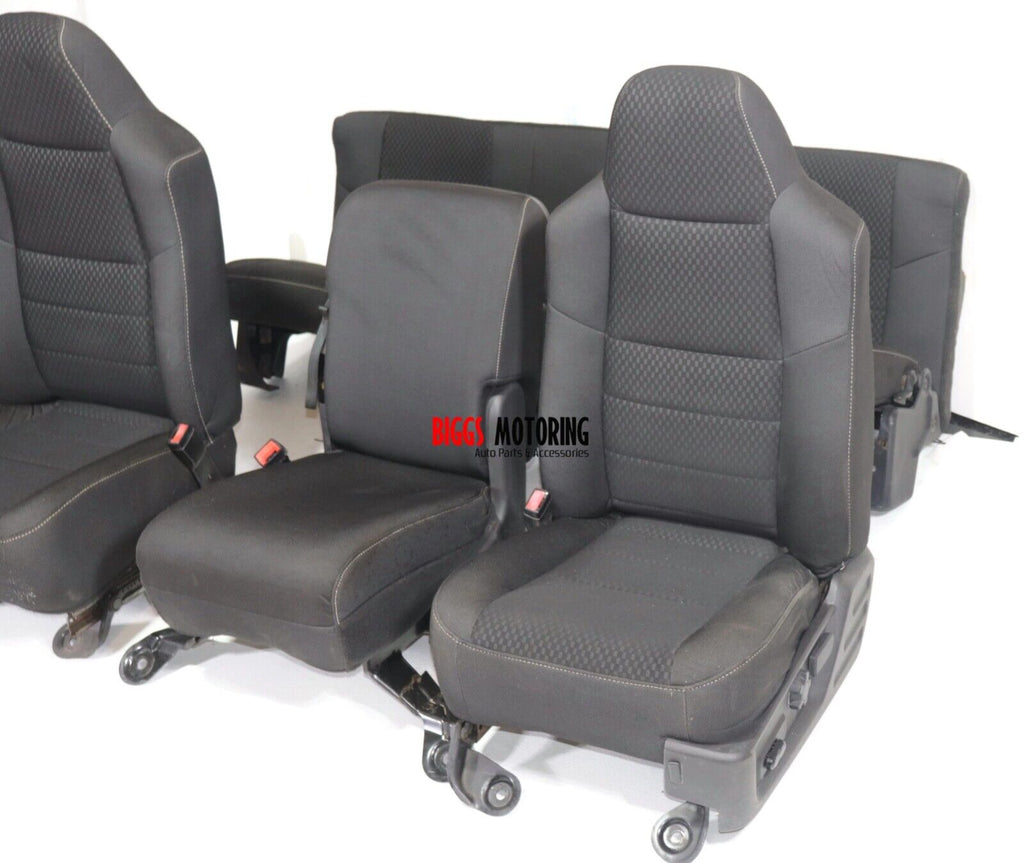 Fa ctory Oem Used Powered Driver Left Side, Powered Passenger Right Side, Rear Seat and Center Console Set For Ford F250 Super Duty Extended Cab Item Is In Good Working Order, Ready To Be Installed.. Item Will Show Signs Of Normal Used Wear, Minor Scratches, Scrapes, & Scuffs Etc See Pictures For Better Details