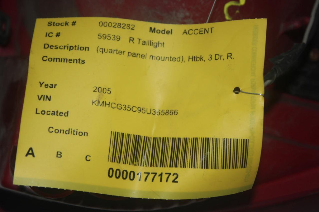 2003-2005 HYUNDAI ACCENT PASSENGER SIDE REAR TAIL LIGHT 28282