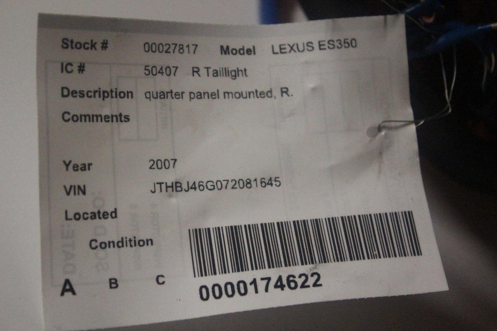 2007-2009 LEXUS ES350 PASSENGER SIDE REAR TAIL LIGHT