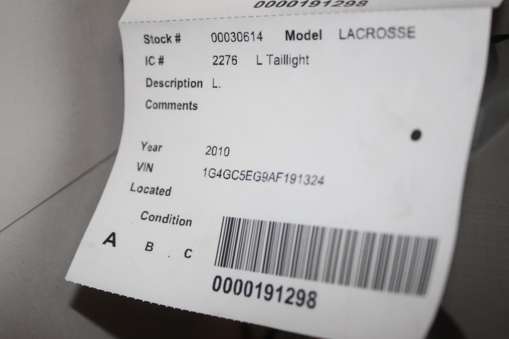 2010-2013 BUICK LACROSSE DRIVER LEFT SIDE REAR TAIL LIGHT 30614 RE# biggs
