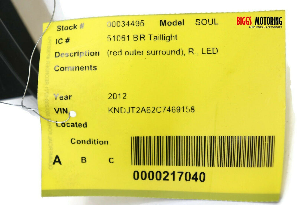 2010-2013 Kia Soul Passenger Right Side Rear Tail Light 34495