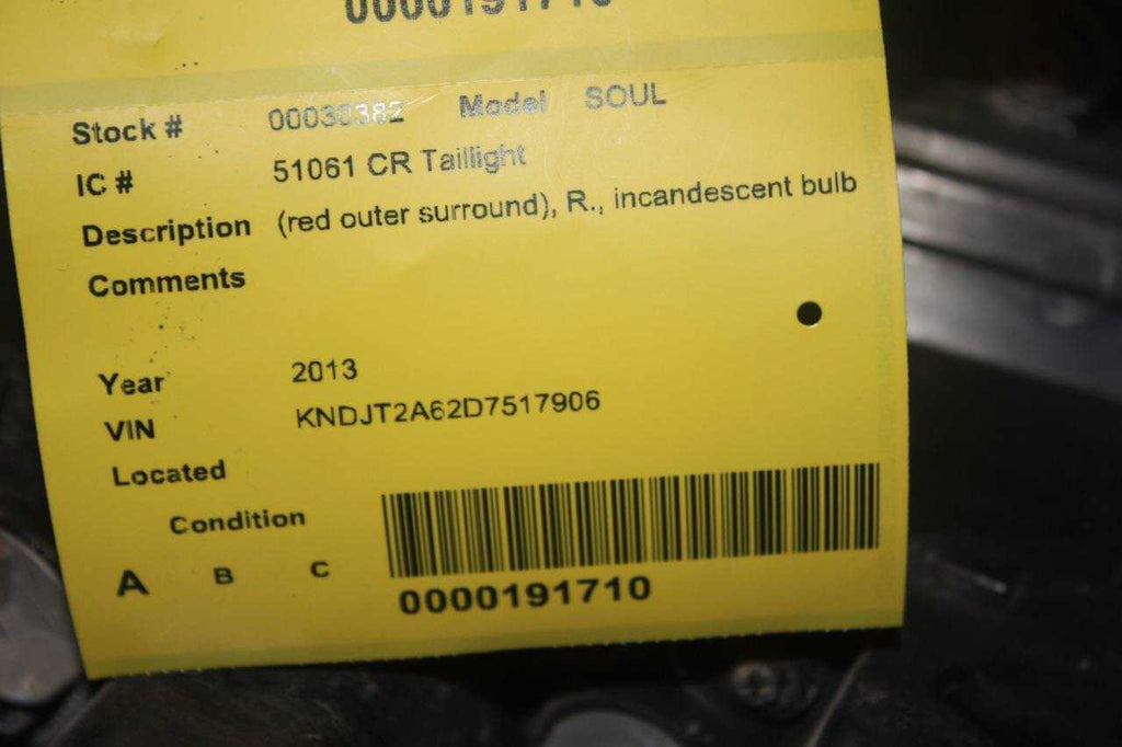 2010-2013 KIA SOUL PASSENGER RIGHT SIDE TAIL LIGHT 30382