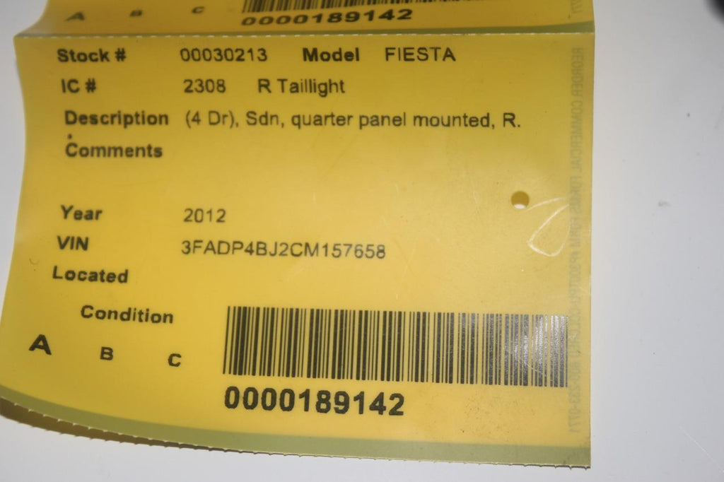 2011-2013 FORD FIESTA PASSENGER SIDE REAR TAIL LIGHT 30213