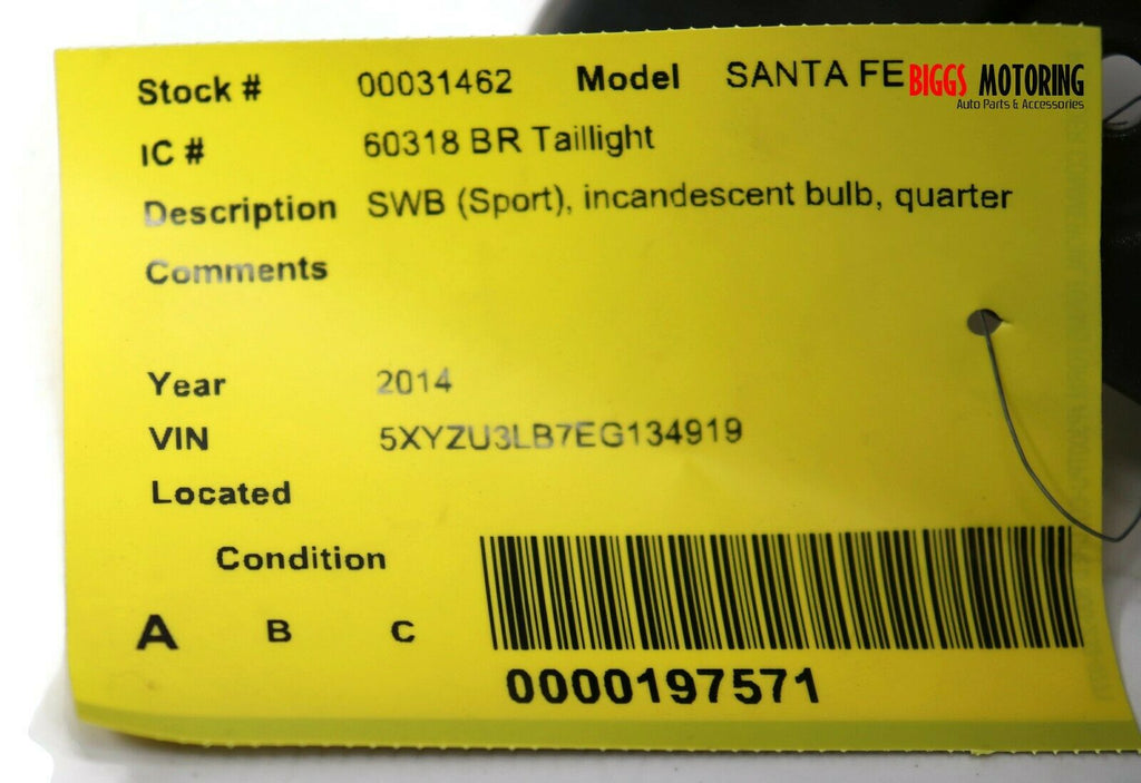 2012-2016 Hyundai Santa Fe Passenger Right Side Rear Tail Light 31462/ 33034