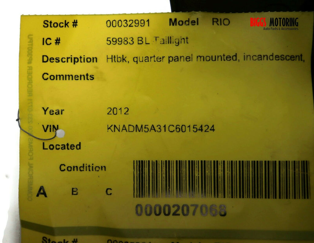 2012-2017 Kia Rio Driver Left Side Rear Tail Light 32991