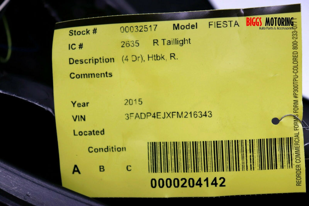 2014-2018 Ford Fiesta Htbk Passenger Right Side Rear Tail Light 32517