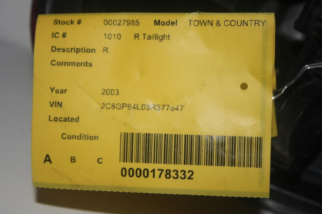 2001-2003 DODGE CARAVAN TOWN & COUNTRY RIGHT PASSENGER SIDE TAIL LIGHT 27985