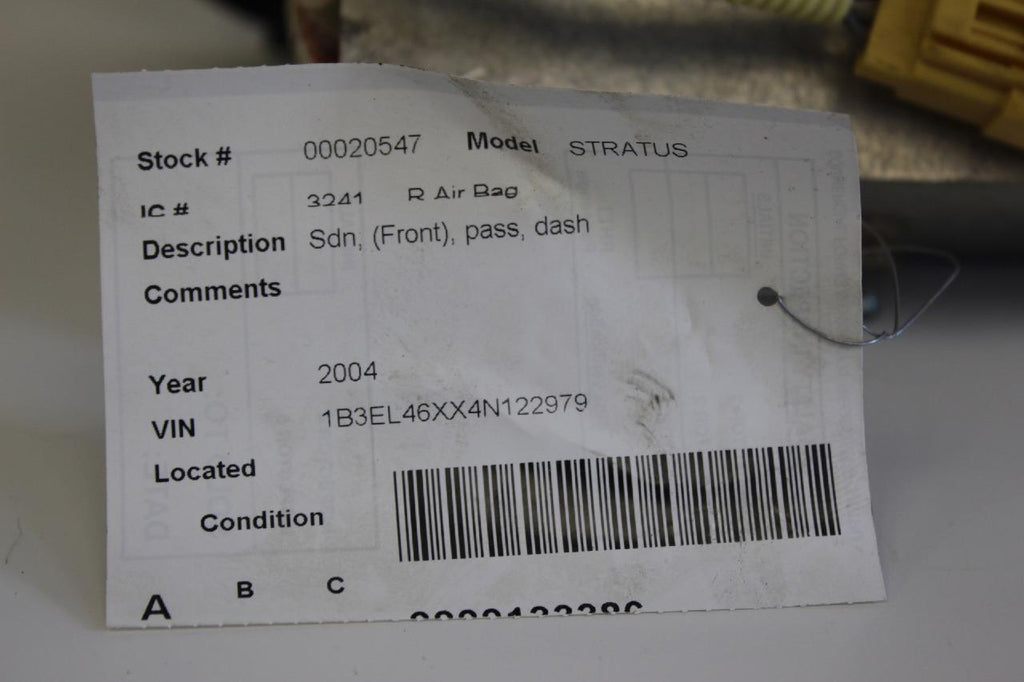 2001-2004 DODGE STRATUS PASSENGER RIGHT SIDE DASH AIR BAG BLACK