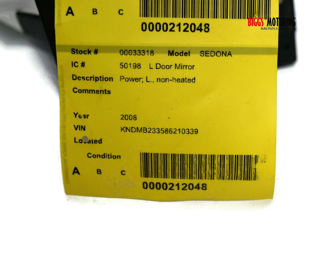 2006-2009 Kia Sedona Driver Left Side Power Door Mirror White 33318