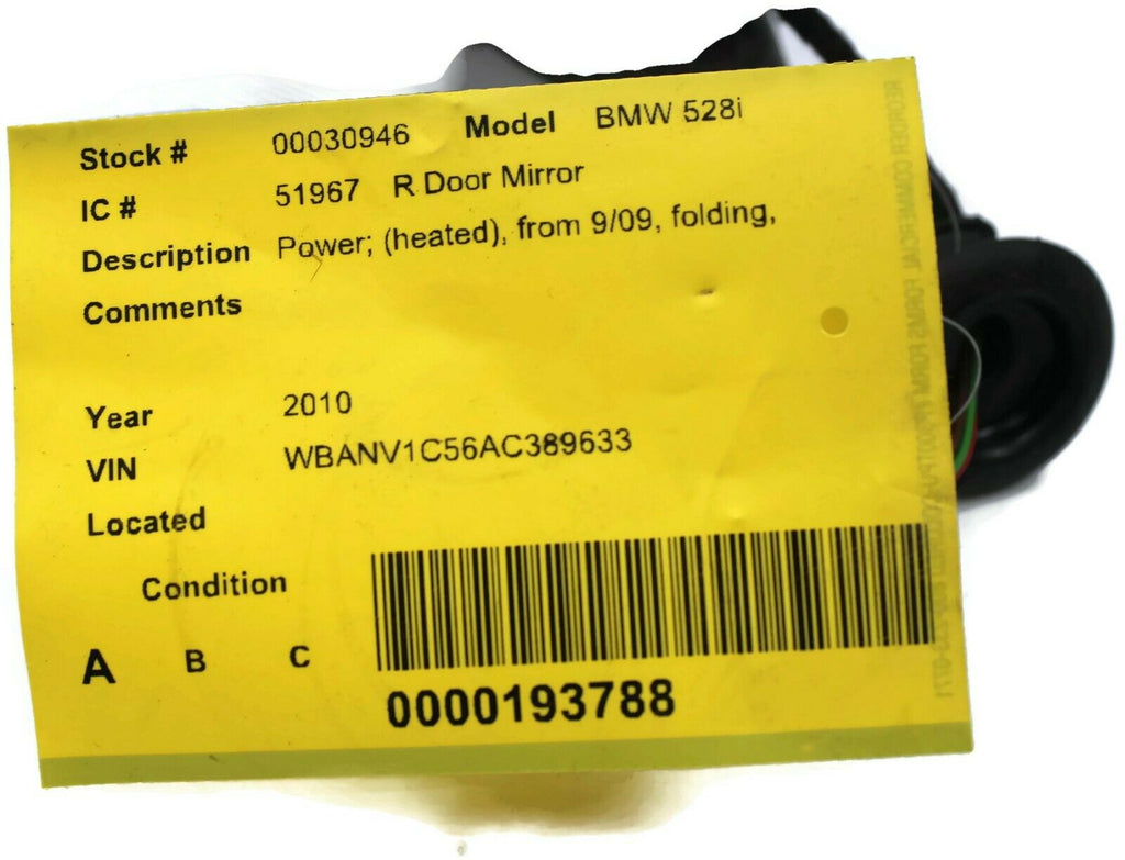 2007-2010 Bmw 528I Passenger Right Side Power Door Mirror Blue 30946