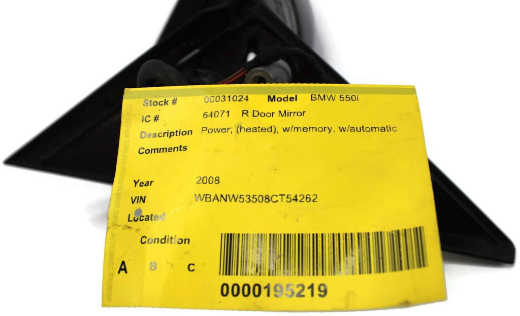 2007-2010 Bmw 550I Passenger Right Side Power Door Mirror Gray 31024