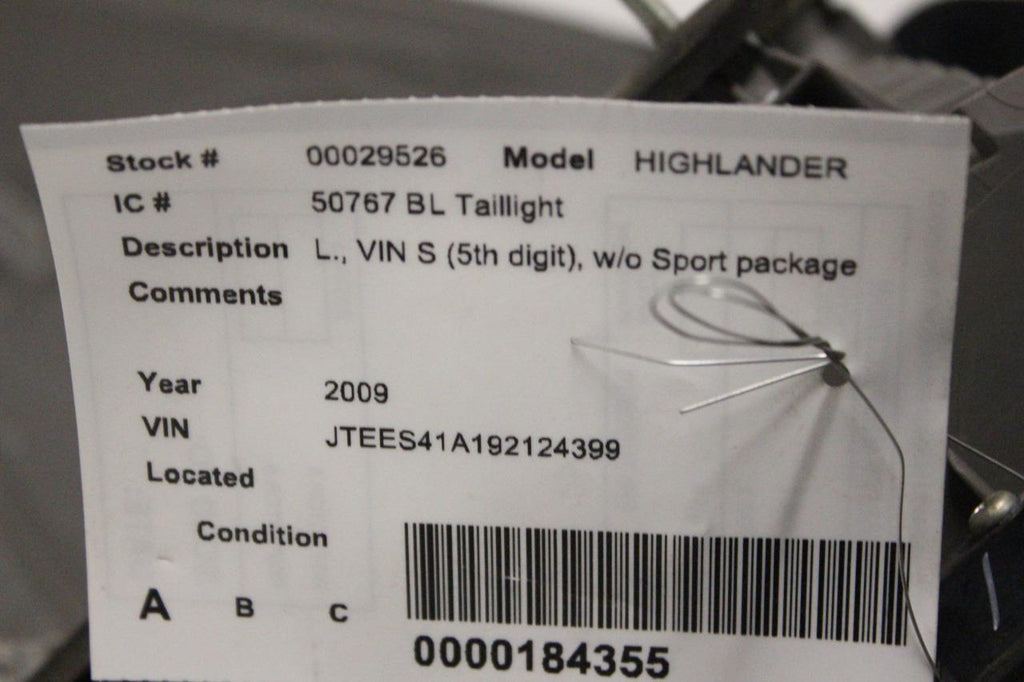 2008-2010 TOYOTA HIGHLANDER DRIVER SIDE REAR TAIL LIGHT 29526