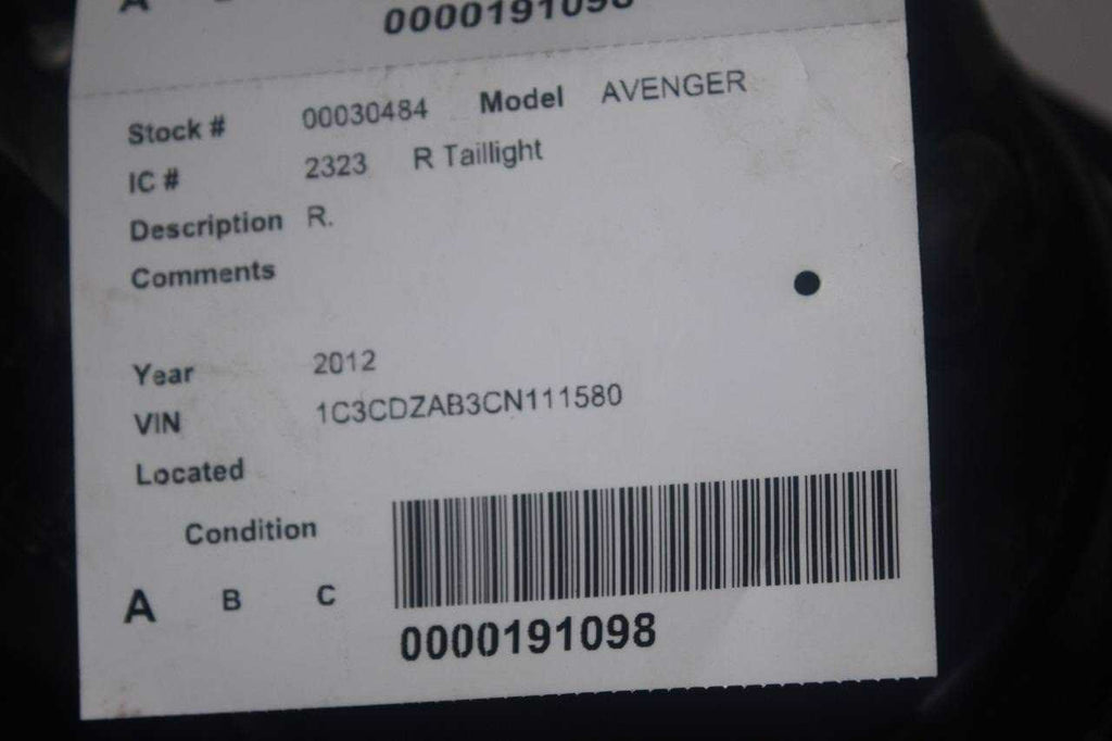 2011-2013 DODGE AVENGER RIGHT PASSENGER SIDE REAR TAIL LIGHT 30484 Re# biggs