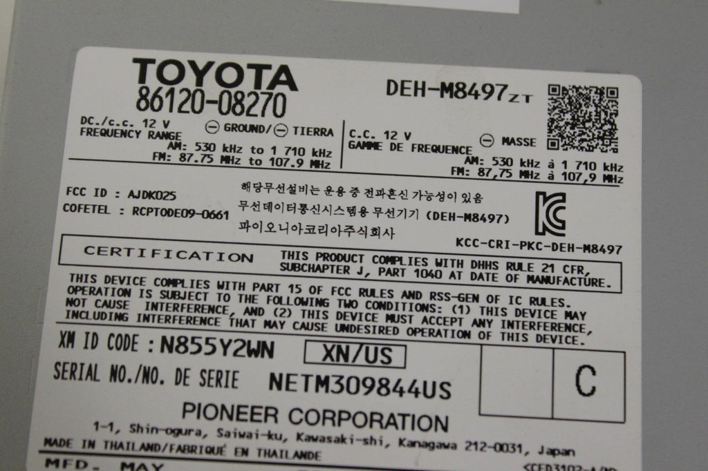 2011-2014 Toyota Sienna Wma Cd Mp3 Player Radio 86120-08270