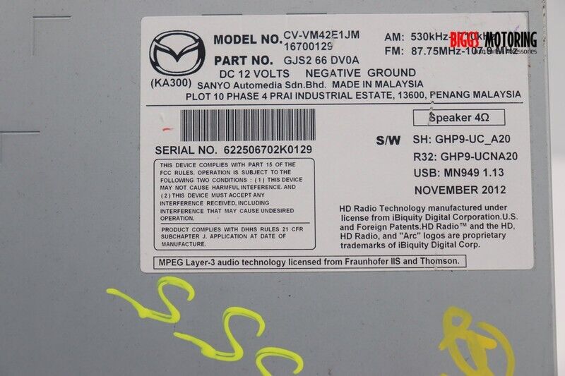 2013-2014 Mazda CX-5 Radio Stereo Cd Player Display Screen GJS2 66 DV0A