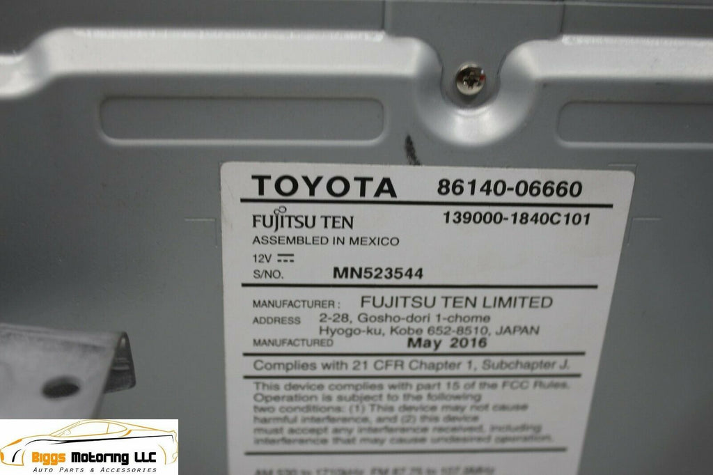 2015-2017 Toyota Camry 100614 Radio Touch Screen Cd Player 86140-06660