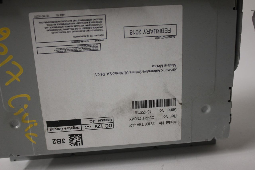 2016-2017 HONDA CIVIC RADIO STERO RECEIVER TOUCH SCREEN 39100-TBA-A21
