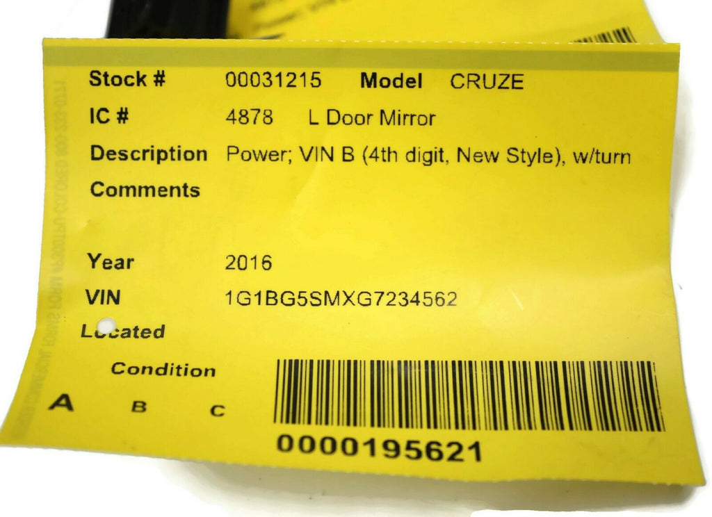 2016-2018 CHEVY CRUZE PASSENGER RIGHT SIDE POWER DOOR MIRROR BLACK 31215