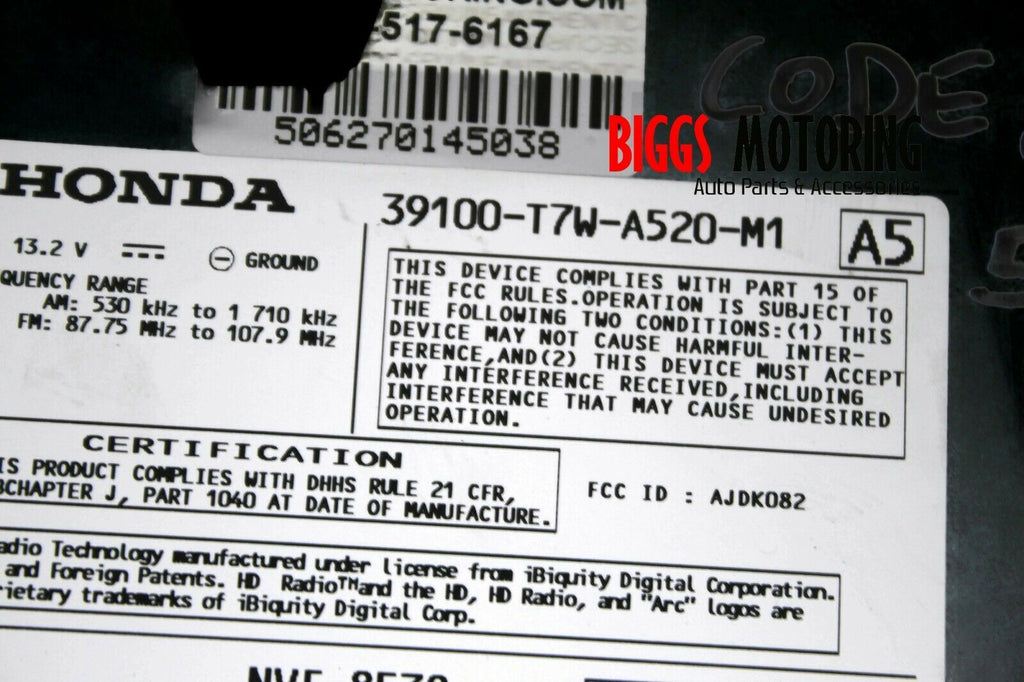 Model: HR-V Year: 2016-2018 - Part #:39100-T7W-A520-M1
