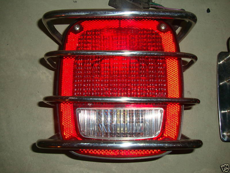 87-06 JEEP WRANGLER TAIL LIGHTS WITH CHROME TAIL LIGHTS GUARDS AND FREE CHROME GAS TANK SURROUND.