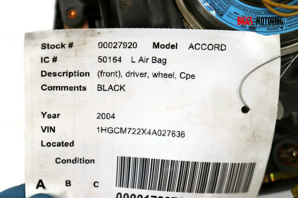 Honda Accord Coupe 2 Doors Driver Side Steering Wheel Air Bag Black 27920